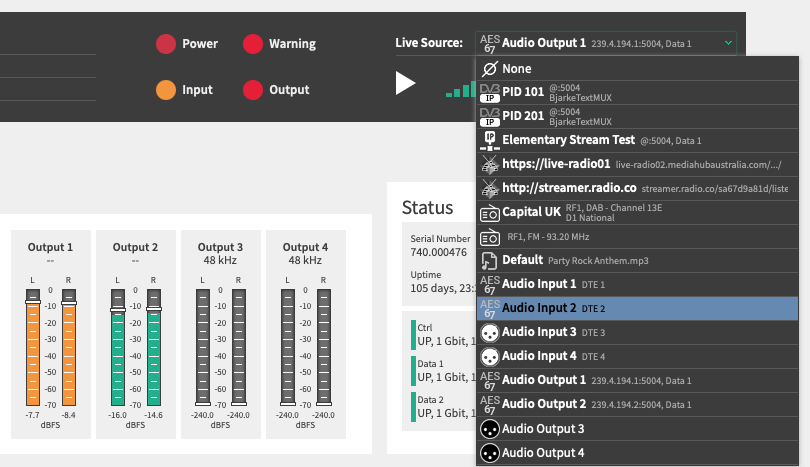 With the Live Listening option, audio monitoring becomes simple and accessible from anywhere. The feature allows users to listen to any available audio signal directly via a web interface or through any standard web stream client without requiring additional software.