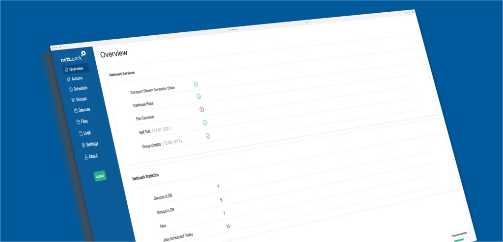 Built for modern broadcast infrastructures, nettwark enables centralized control of devices operating across IP and satellite networks. Whether you’re managing a small local setup or a global fleet, the platform provides intuitive tools to simplify daily workflows and reduce operational complexity.